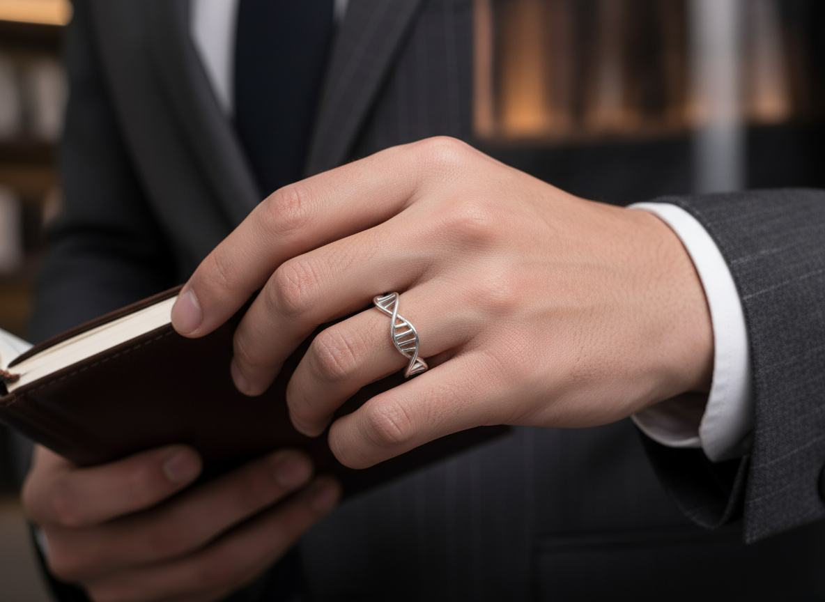 Descubre la belleza de la ciencia y el estilo con este anillo único con el diseño de la doble hélice del ADN. Fabricado en acero inoxidable, es la pieza perfecta para quienes aprecian un accesorio original y significativo. Su diseño envolvente es cómodo y moderno, ideal para usar a diario.