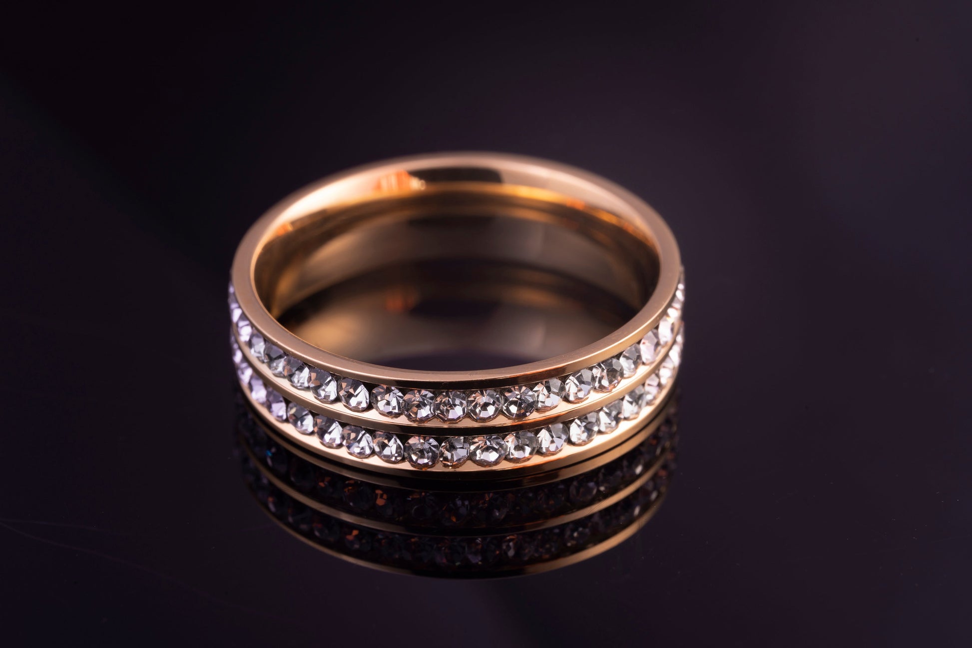 Anillo de acero inoxidable para dama con doble linea de incrustaciones de circonias blancas.