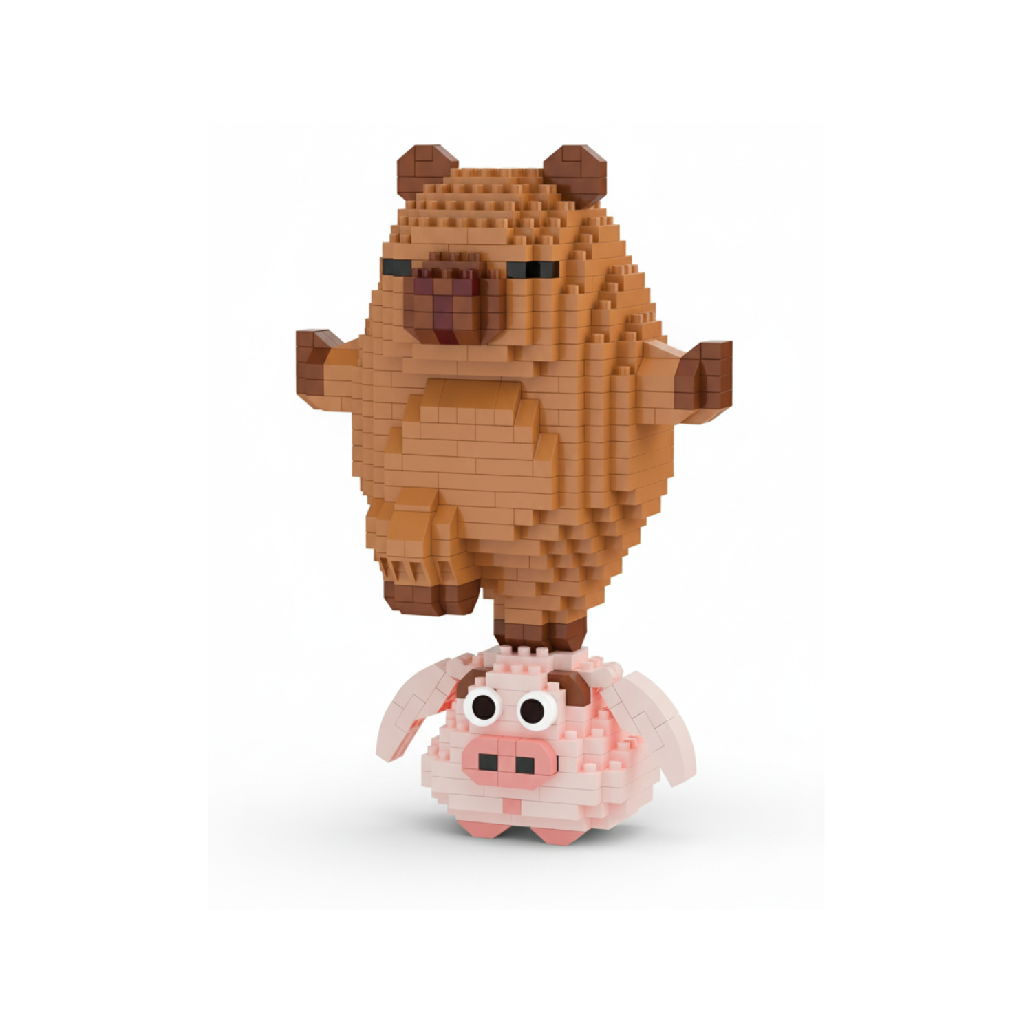 ¡EL MUNDO CONOCERÁ... EL EQUILIBRIO! ✋🐗 Este no es un capibara común; es un maestro de la gravedad. Inspirado en la pose mística del "Shinra Tensei", este modelo te desafía a construir una estructura vertical sorprendente: un capibara manteniéndose en una sola pata sobre un cerdito rosado.