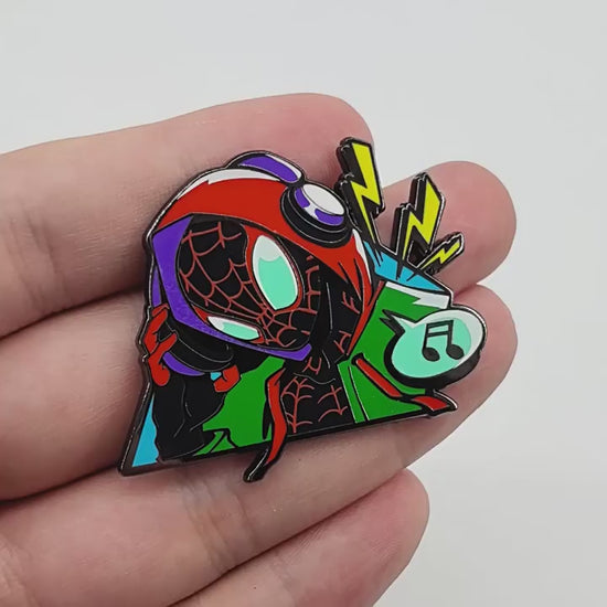 ¡Qué increíble pin de Spider-Punk! 💥 Este diseño captura a la perfección la esencia rebelde de Hobie Brown, el héroe arácnido de la Tierra-138. Es el accesorio ideal para cualquier fan que quiera mostrar su lado más audaz y punk. ¡Los colores brillantes, el peinado mohicano y el rayo son fantásticos! 🤘
