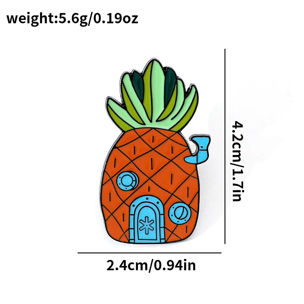 ¡Qué pin tan nostálgico! 🍍 Este diseño captura la icónica casa de piña de Bob Esponja, el lugar donde vive con su caracol, Gary. Es el accesorio perfecto para cualquier fan de la serie que quiera llevar un pedazo de Fondo de Bikini. ¡Los colores brillantes y el detalle de las ventanas de ojo de buey son fantásticos! ✨
