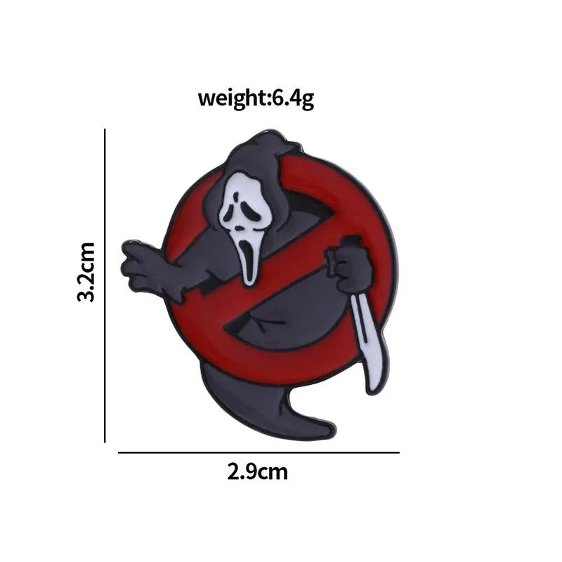 ¡El crossover de terror que no sabíamos que necesitábamos! 🤩 Este pin de esmalte fusiona al icónico asesino Ghostface de la saga Scream 🔪 con el famoso logo de los Cazafantasmas 🚫👻. Es el accesorio perfecto para los fans de ambos mundos y para los que aman el humor oscuro. ¡Un must-have para tu mochila o chaqueta! ✨