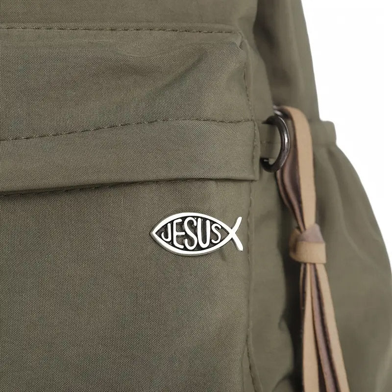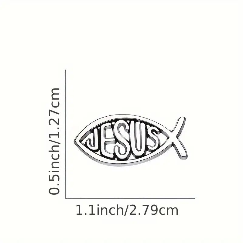 El pin es un símbolo de fe muy reconocido, representando el Ichthys o "pez de Jesús" 🐟✝️. Su diseño con la palabra JESUS dentro evoca la conexión con el cristianismo y es un recordatorio de la devoción. Es un accesorio ideal para llevar un mensaje de fe discreto y lleno de historia.