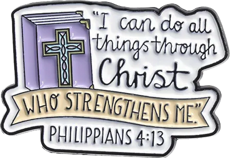 Este hermoso pin es un recordatorio constante de uno de los versículos más inspiradores de la Biblia: "Todo lo puedo en Cristo que me fortalece" (Filipenses 4:13). Con un diseño delicado y lleno de significado, es perfecto para quienes desean llevar su fe siempre consigo. 💜📖